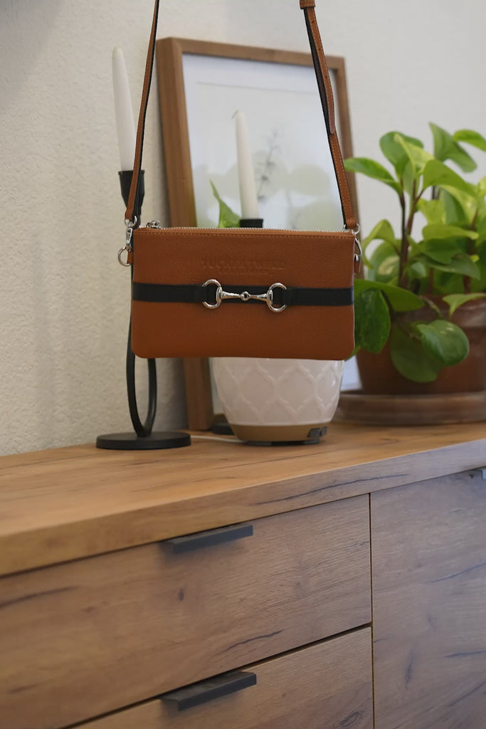 Equestrian meets convenience in classic Tucker Tweed style. The Wellington Wristlet pays tribute to the 12-week annual Winter Equestrian Festival, a destination for the world’s finest horses and riders. Complete in fine pebble-grain leather, this rider-requested style is available in 20 colors with solid or contrast color accents and snaffle bit detail. The wristlet interior is lined completely in signature red with leather accents, featuring 6 card pockets, bill pocket, a private zipper pocket and room for the largest of cell phones. A removable wristlet strap can attach on the side, on the zipper, or remove for clutch carry. An adjustable shoulder strap is also provided for a crossbody carrying option. Versatile, simple, equestrian luxury.